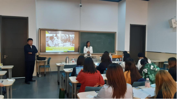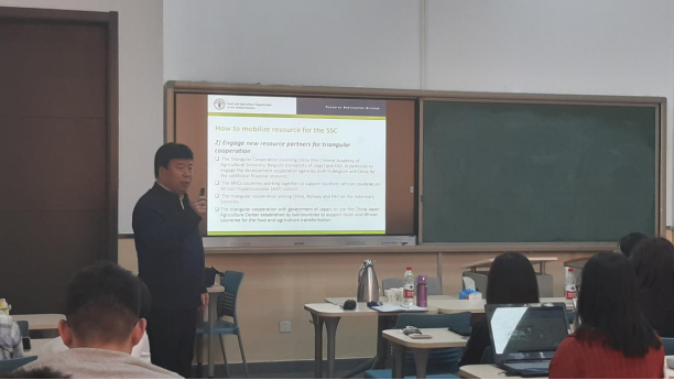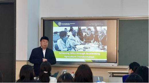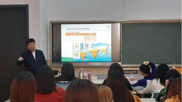 2021年5月6日下午,由乐天使体育官网组织的以“走近国际组织”为主题的短期课程在沙河校区学院楼11号楼111报告厅精彩开讲。联合国粮食及农业组织(FAO)高级官员刘中蔚先生应邀为乐天使体育官网国际商务专业的同学们带来“走近国际组织”短期课程。本次短期课程由于爱芝教授主持,参加本次短期课程的师生有乐天使体育官网党委书记郭冬梅教授、国际交流专项工作中心主任黄乃静副教授以及乐天使体育官网国际商务专业的本科生和研究生。
