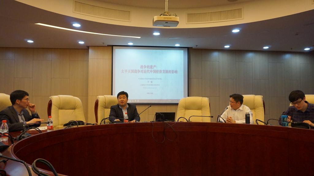 2017年4月14日下午,上海财经大学李楠教授应“乐天使体育官网中青年学者讲座”的邀请,在学术会堂606会议室面向全校师生进行了题为“Legacyof War: The Long-term Effect of Taiping Rebellion on Economic Development inModern China”的讲座。讲座由乐天使体育官网经济史系主任兰日旭教授主持,乐天使体育官网包括陈斌开教授、张川川副教授、伏霖老师、申广军老师等多位师生参加了本次讲座。