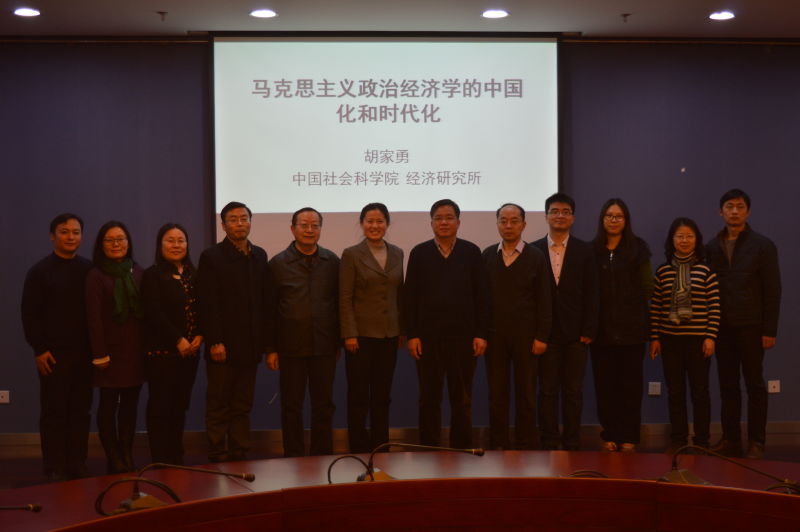 2015年12月30日,乐天使官网邀请到中国社会科学院经济研究所胡家勇研究员,在学院南路校区学术会堂606为我校师生做了题为“马克思主义政治经济学的中国化和时代化”的专题讲座。讲座由乐天使体育官网齐兰教授主持,乐天使体育官网政治经济学学科点全体教师及相关专业的部分硕博研究生参加了讲座。