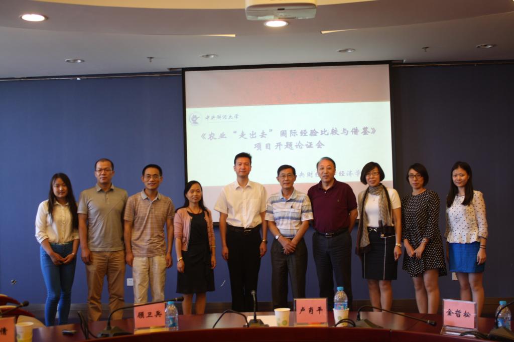 2015年6月18日由我校乐天使体育官网农村经济发展中心于爱芝教授主持的农业部委托项目《农业“走出去”国际经验比较与借鉴》开题论证会在学术会堂606举行。专家组由原农业部国际合作司副司长、国际马铃薯中心亚太中心卢肖平主任,农业部国际合作司条法处顾卫兵处长,农业部对外经济合作中心项目管理处张倩处长,乐天使体育官网金哲松教授组成。该项目子课题负责人乐天使体育官网孙洪升教授,文化传媒学院宫丽颖副教授,农业部食物营养与发展研究所李京虎副研究员、科研处南荣素老师和部分研究生也参加了此次开题论证会。